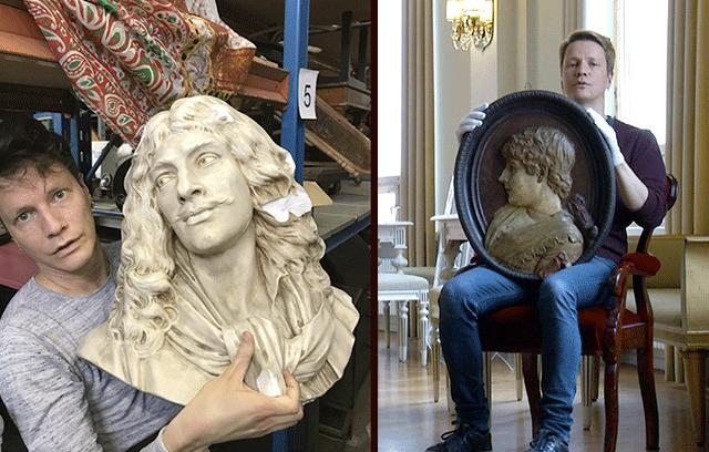 I den första delen berättar Simon om en byst föreställande den berömde dramatikern Molière, och hur illa det gick när han skulle gjuta bysten en fot.