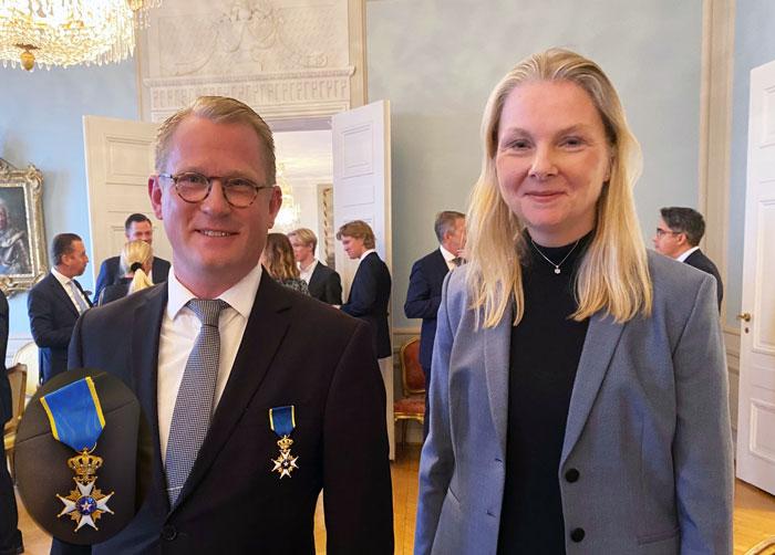 Thibblin tog emot utmärkelsen av ambassadör Nicola Clase under en ceremoni på Sveriges ambassad i Helsingfors den 27 oktober 2021.